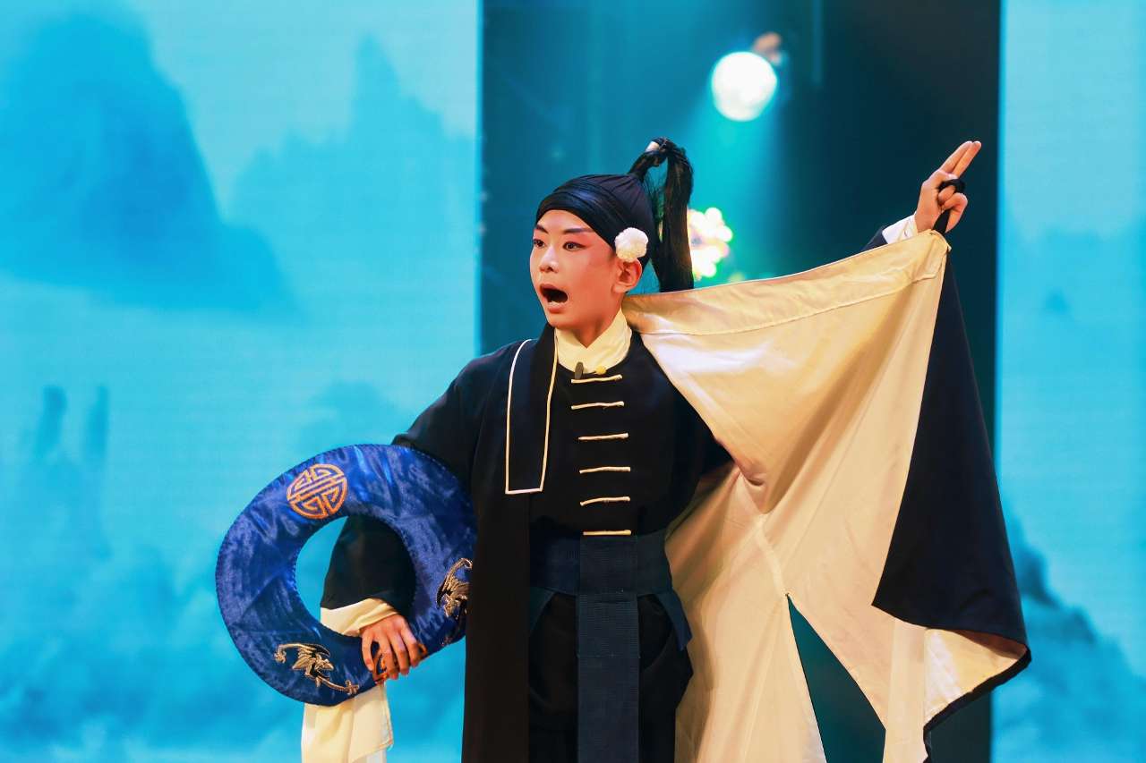 本届浦江戏曲节多元艺术形式交织,映照出传统艺术在当下的蓬勃生机。来自淮南市李北营少儿京剧团的“梨园之星”金奖得主、小演员张儒林,以一出京剧《白水滩》惊艳全场。上海越剧院一级演员杨婷娜带来《玉簪记·小生虚度二十岁》,婉转唱腔与翩跹身姿尽显江南戏曲的典雅韵味。湖剧传习中心与GMC人声乐团合作的《馄饨赋》为戏曲节带来全新的艺术感受。创作者将传统湖剧与现代阿卡贝拉(无伴奏人声合唱)相融合,在保留戏曲醇厚韵味的同时注入清新活力。