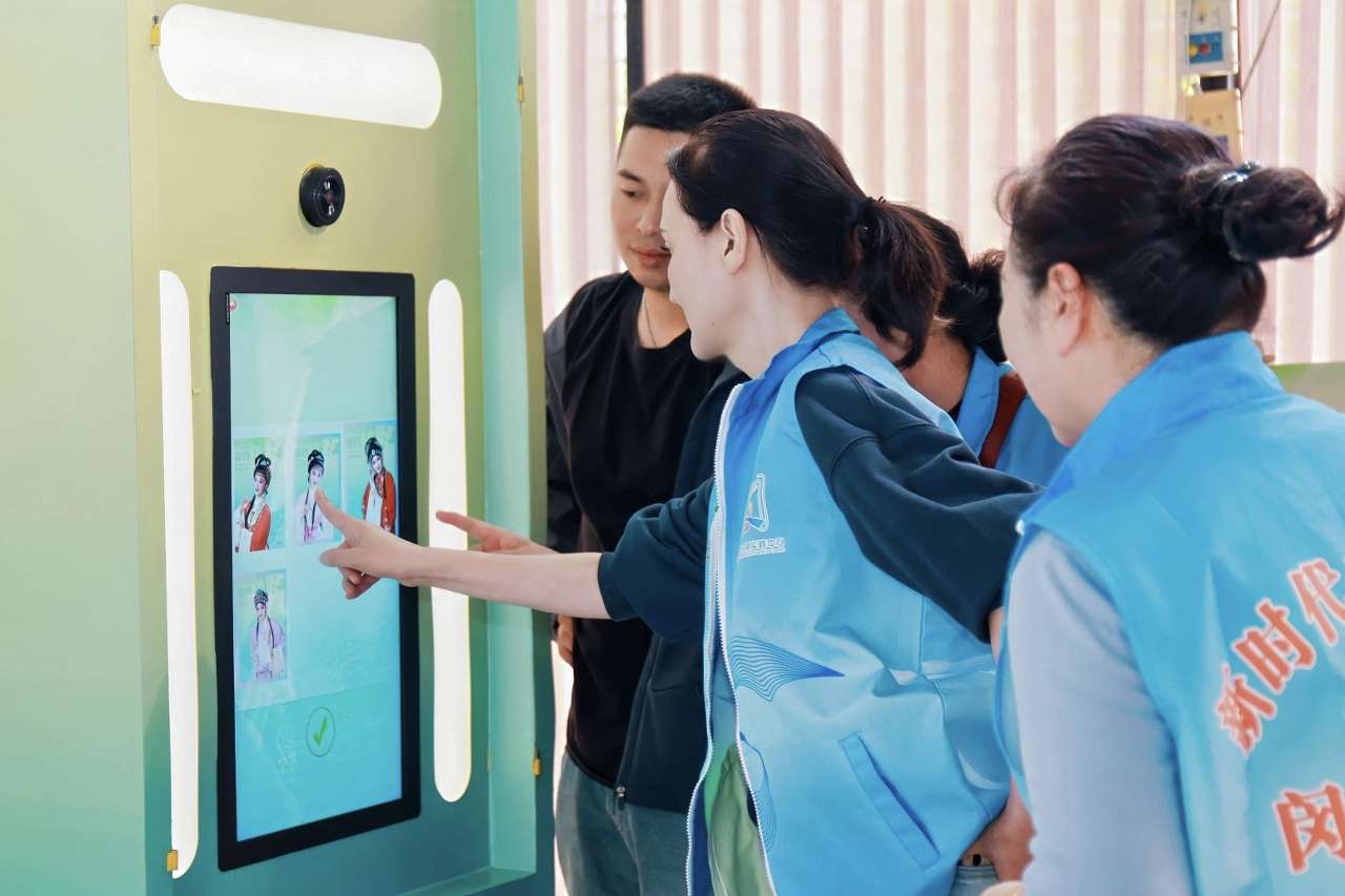 演出开场前,浦江影剧院外已是人头攒动。在“AI戏曲换装”体验区,市民们“变身”戏曲名角。欢乐之余,大家纷纷在社交平台分享体验,让传统艺术之美在指尖“潮”起来。