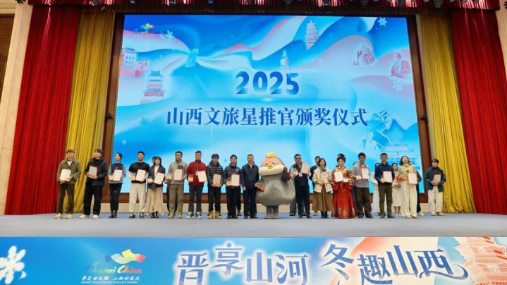 活动现场,山西省文化和旅游厅为荣获“2025年度文旅星推官”称号的安秋金、斗拱爷爷等30位自媒体达人进行了颁奖,并正式启动“冬游山西达人共创计划”。