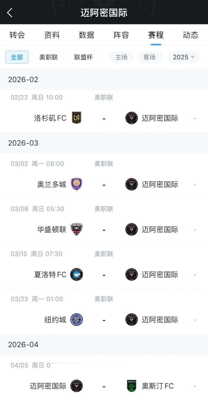 直播吧11月22日讯2026赛季美职联赛程已经公布,这是迈阿密国际在美职联的第七个赛季。迈阿密国际官方发布了下赛季的一些看点。